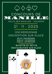 Vendredi 21 Novembre, concours de Manille. Lancement des parties à 20h ! Inscriptions dès maintenant au 09.84.52.97.19 ou sur place,